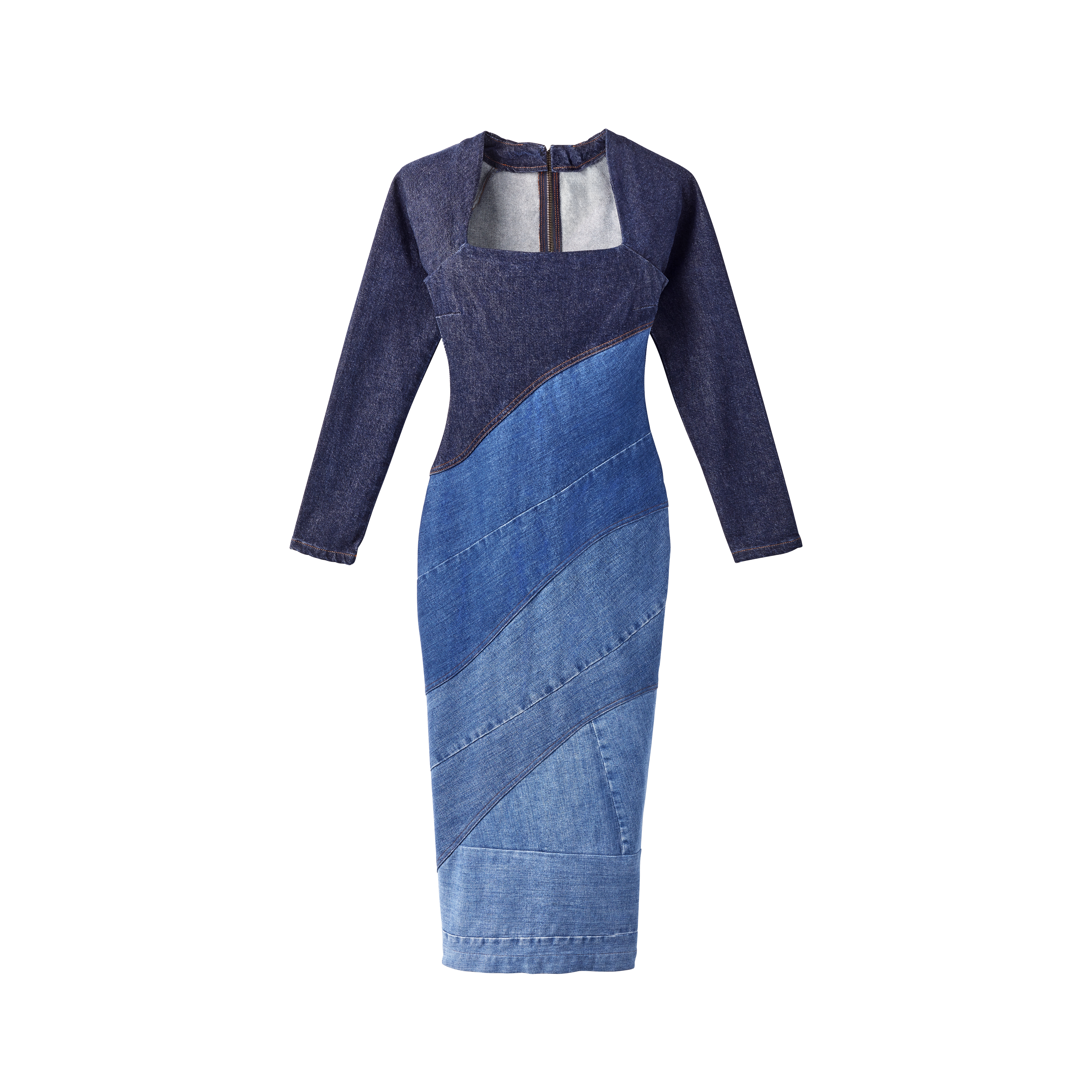 Denim Patchwork Gradient Dress