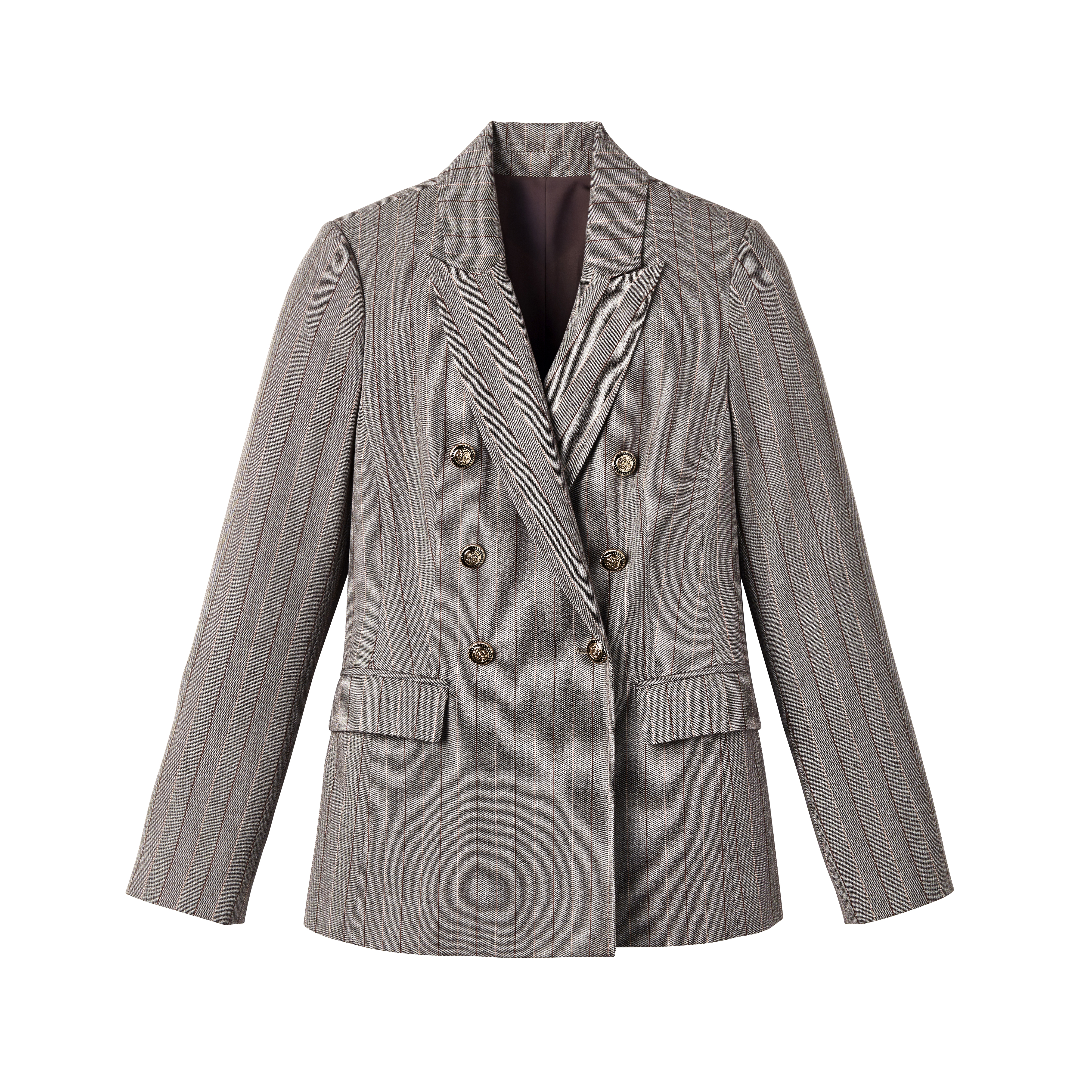 Pinstriped Double-Breasted Blazer