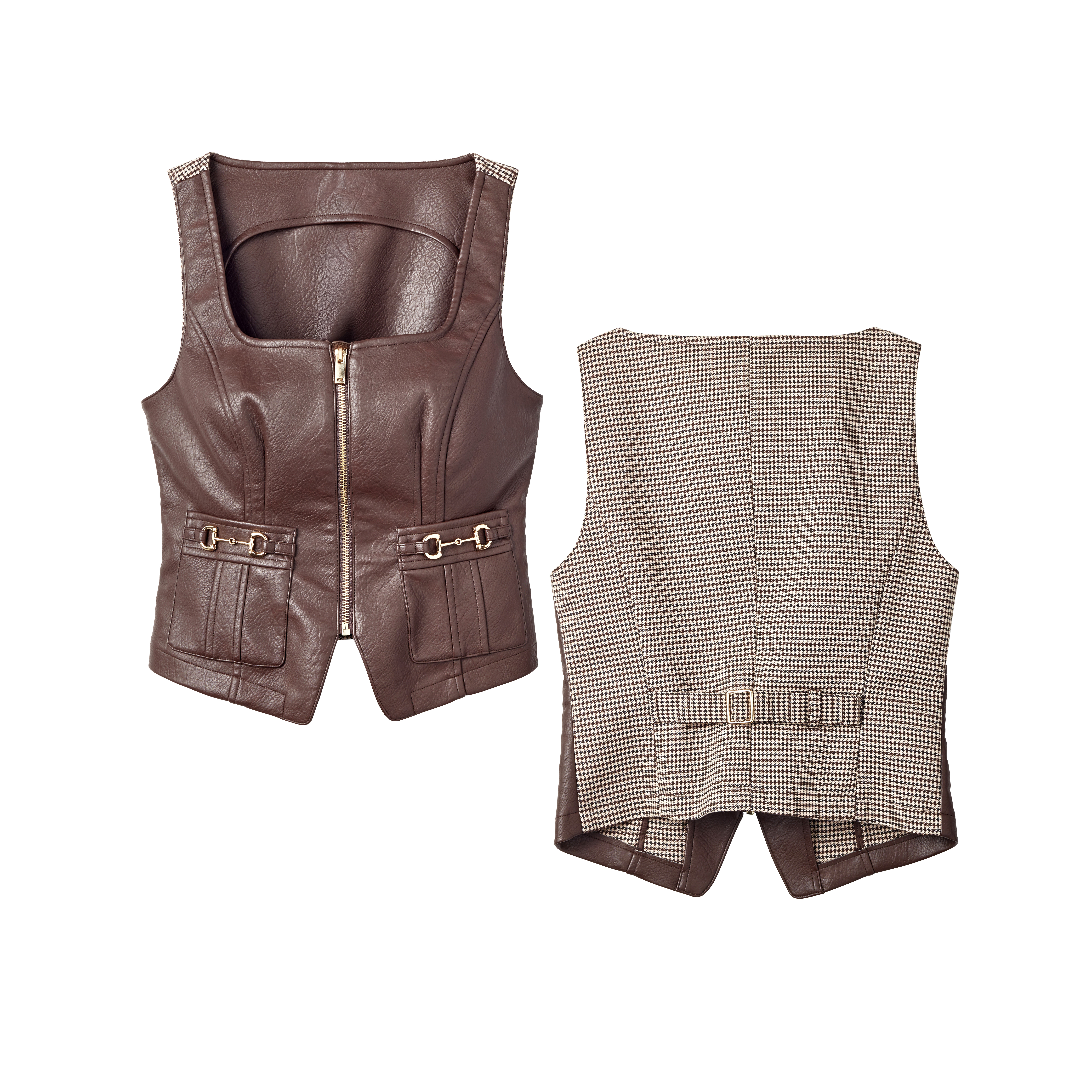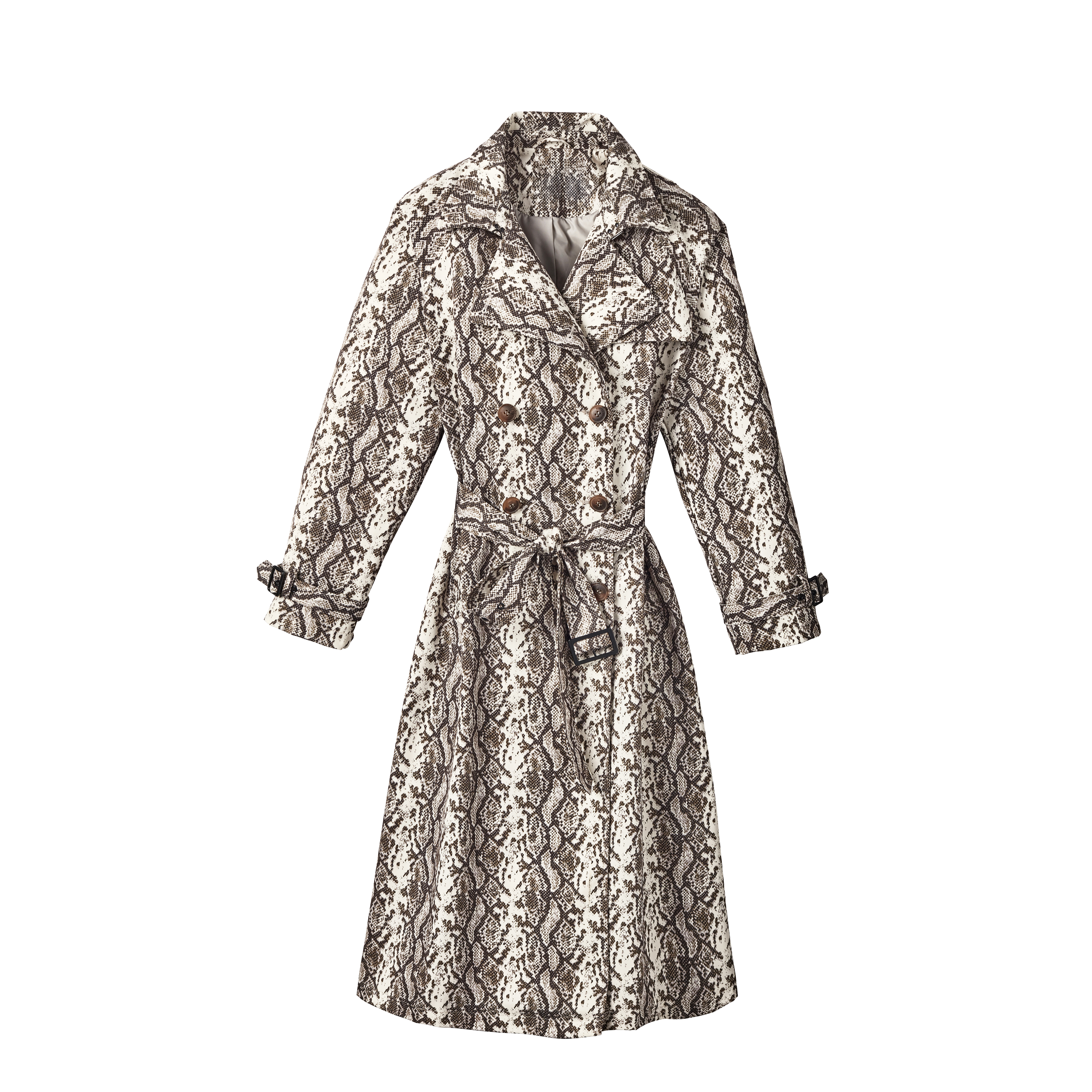Trench à carreaux écossais avec ceinture en cuir synthétique