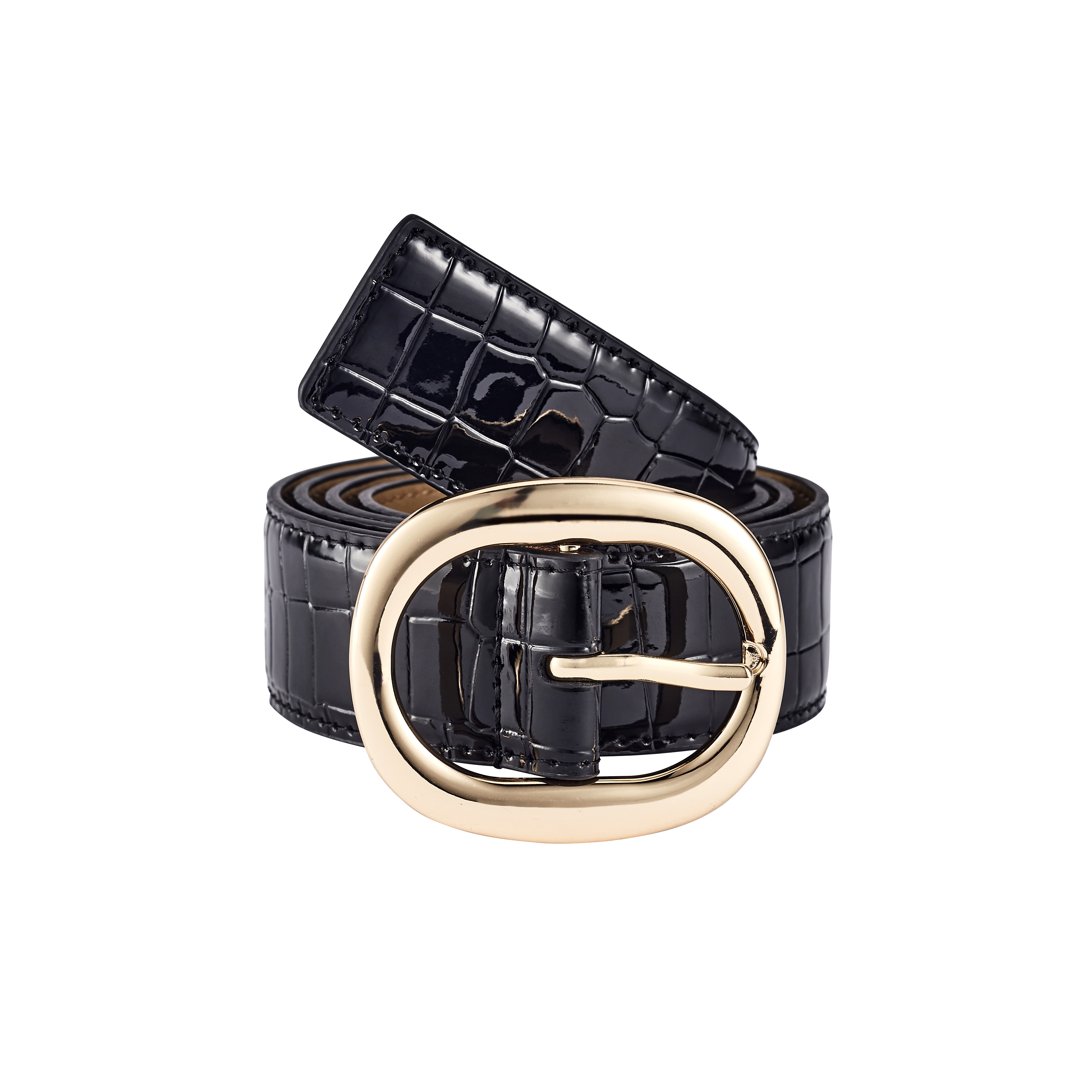 Ceinture à motif crocodile texturé avec boucle dorée