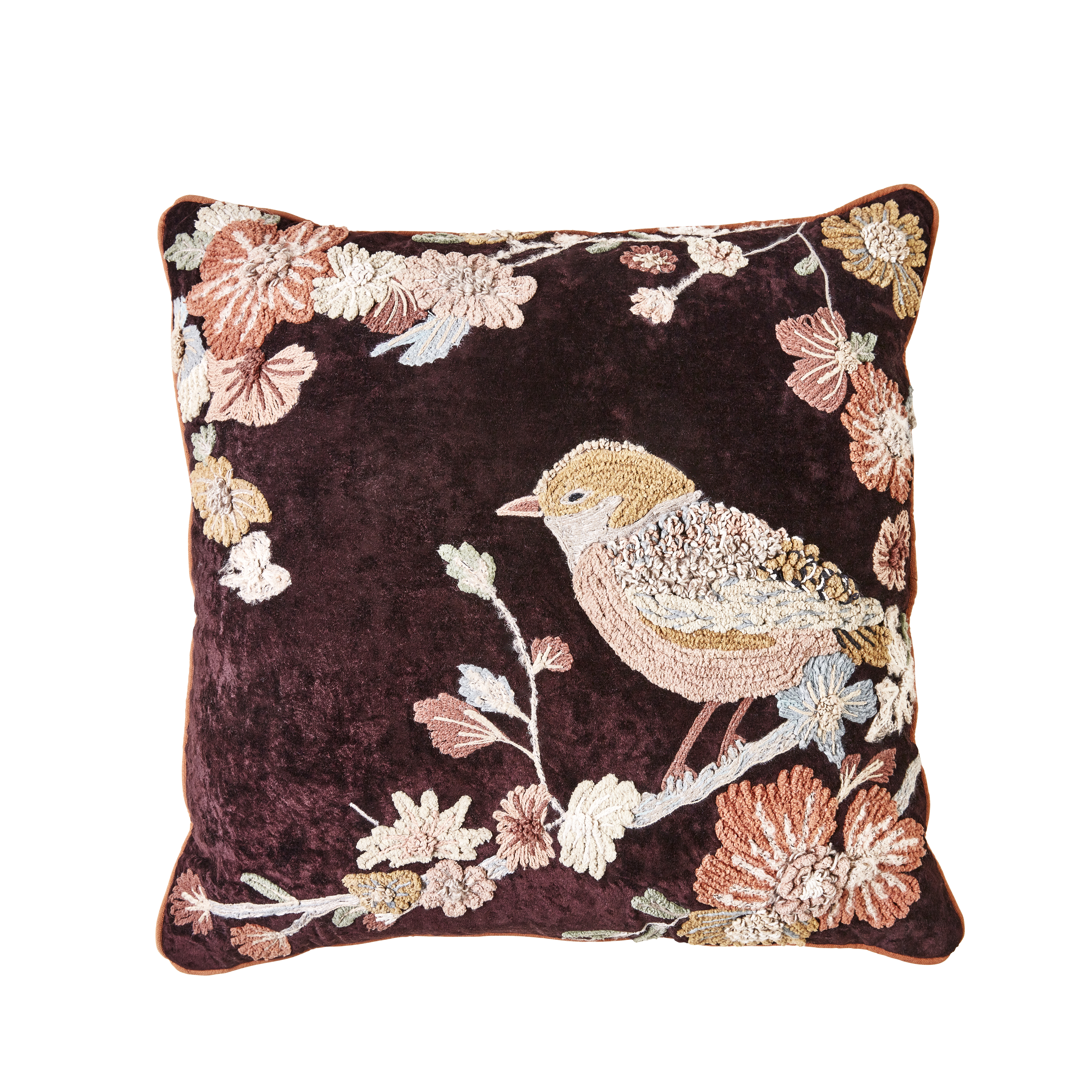 Coussin en velours froissé à motif de moineaux